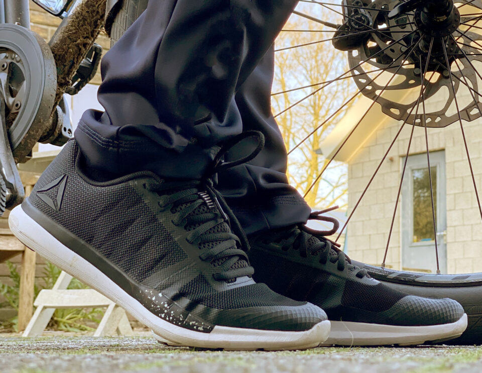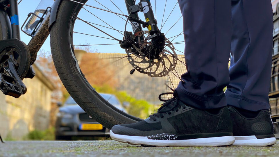 Not my biking shoes, but this was not an active tour. Just a quick visit to the supermarket on my bike. A quick sprint I should say for these Reeboks. These Reeboks look well, fit well and feel well. Pictures were taken during the blue hour. The time where the white balance of the camera does not know what to do. I had to do some color correction, but against the bright background these picture are not the most well lit ones.