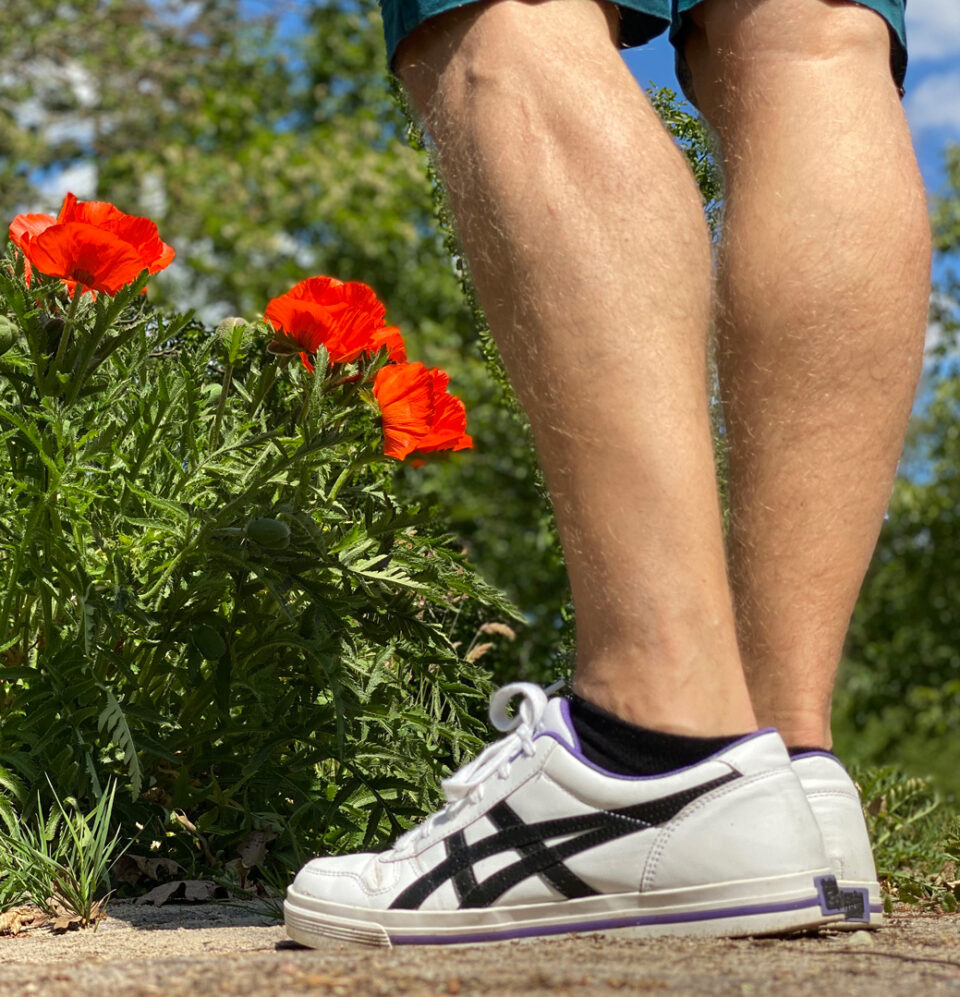 It took some time for the camera to understand that the main subject in the picture was my sneakers and not the poppy. But after a while he had probably enough of it and decided to keep my Asics in focus. This is a pair of my summer sneakers. For nice wheather. Which it is. And yes, the poppy is nice too.
