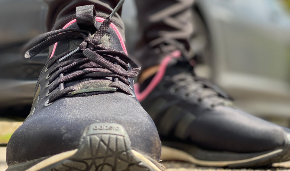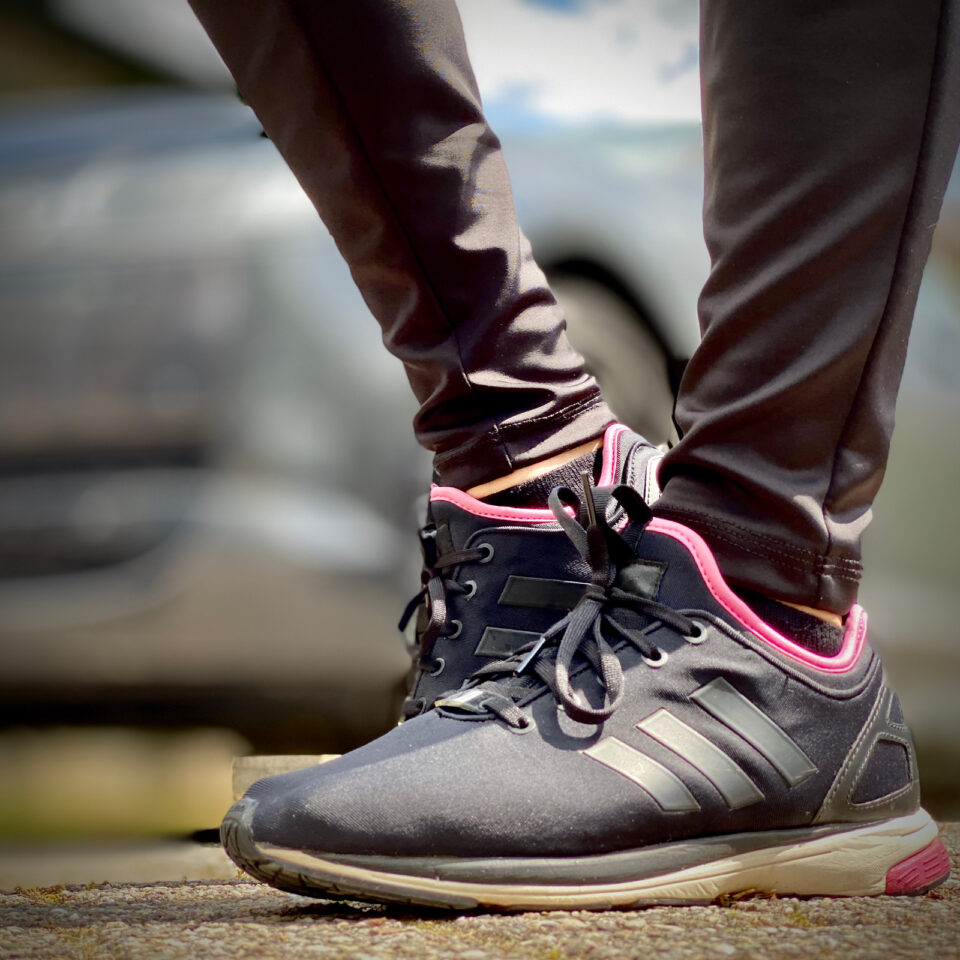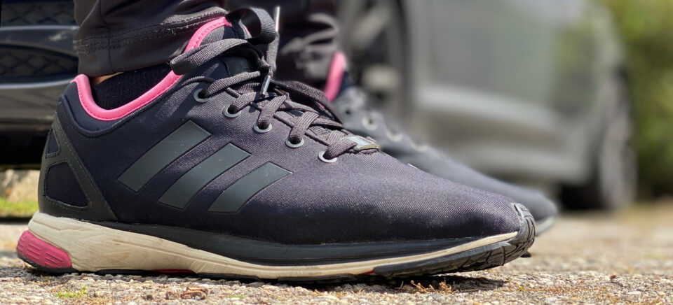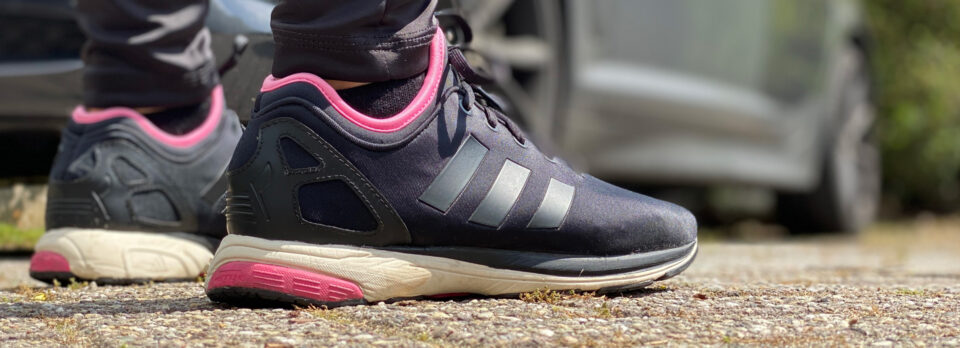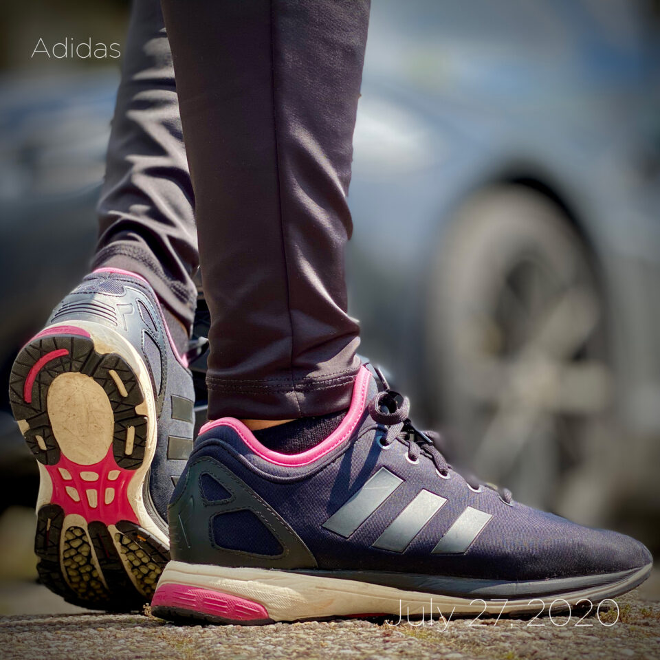 I have these Adidas' for quite some time now. But since they are slightly on the small side I do not wear them very often. Which is a shame as they go very well with these tight tracking pants. I like the smooth fabric with the embedded three stripes. And of course the pink detailing. I should wear them more often.
