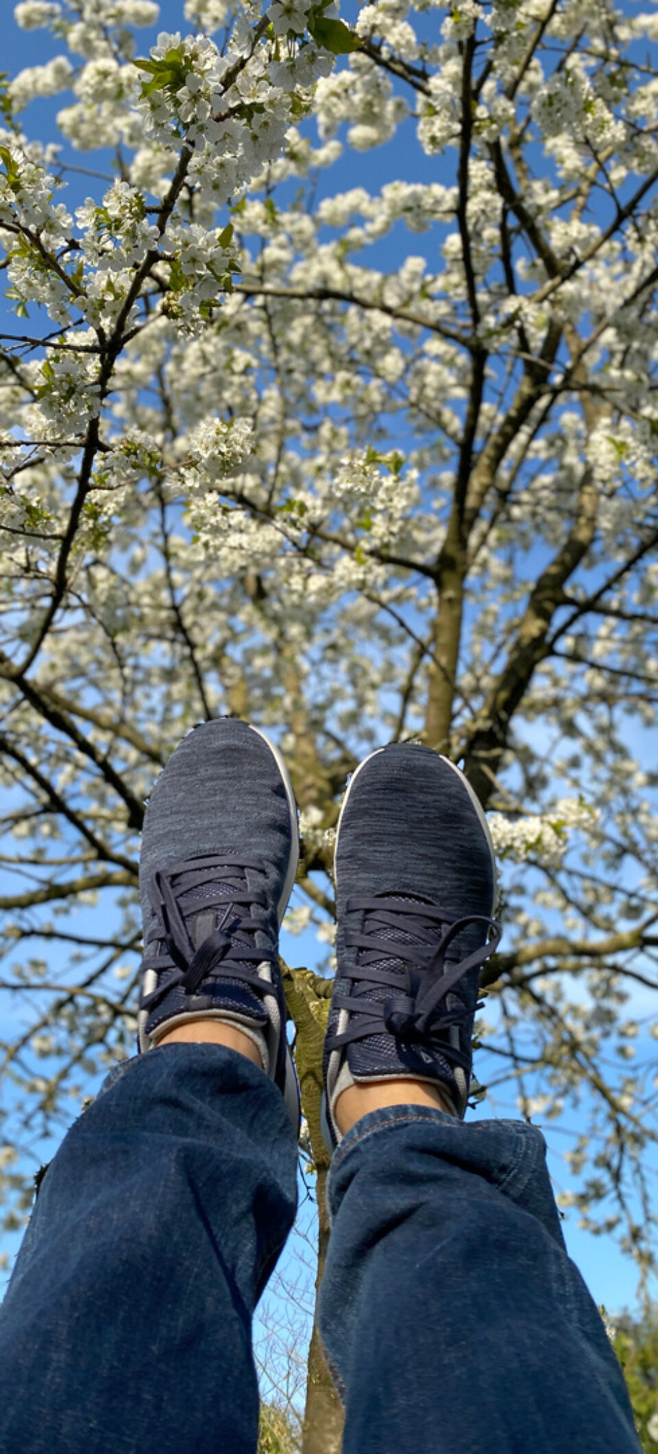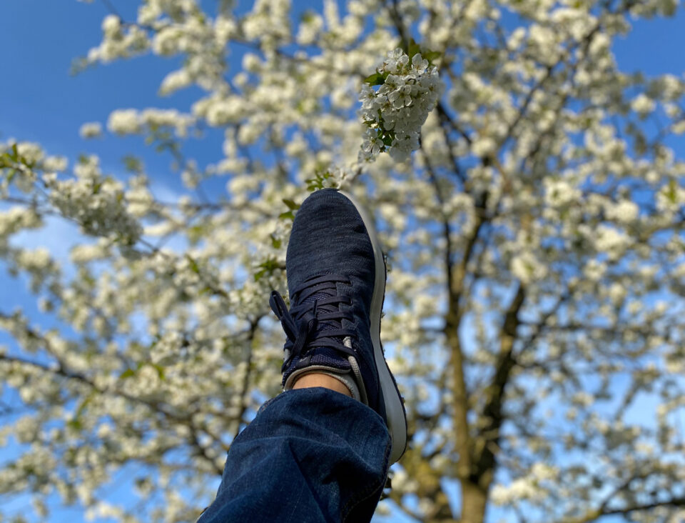 A beautiful spring day. A beautiful sneaker. I tried to catch the blossom of the cherry tree. Only just managed to do so. And so it cama that I forgot to take a picture together with my matching shirt. Also Reebok. And you will also credit me the soles of these. Why? Will tell you next time I wear them.