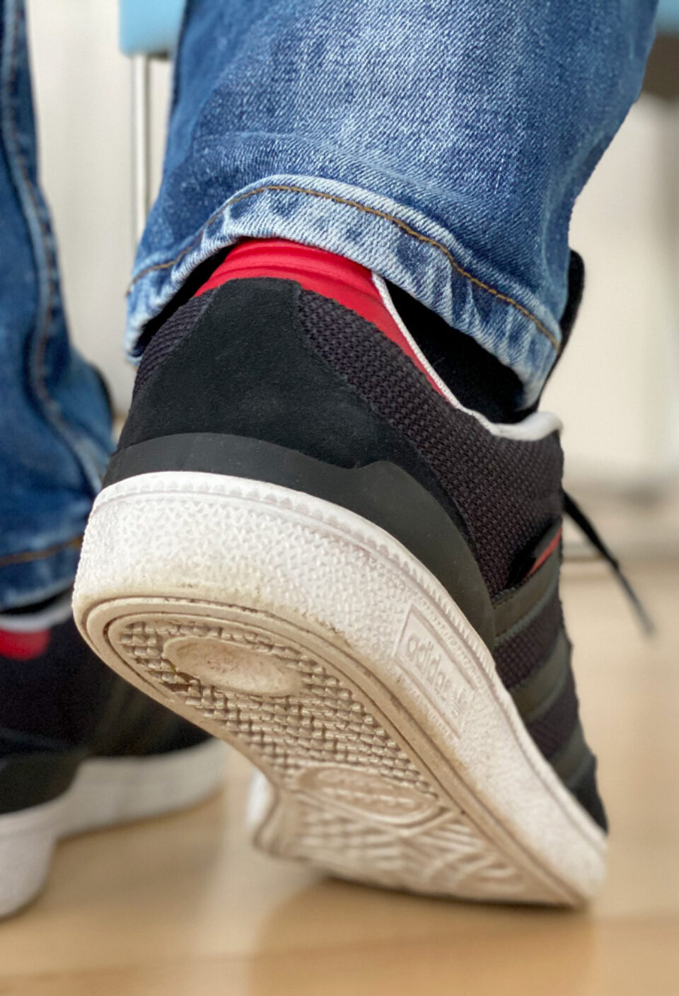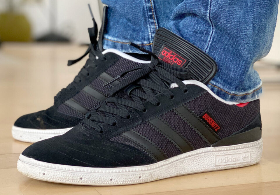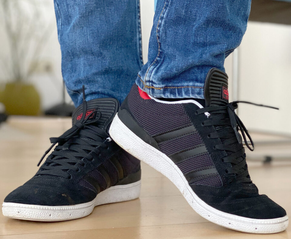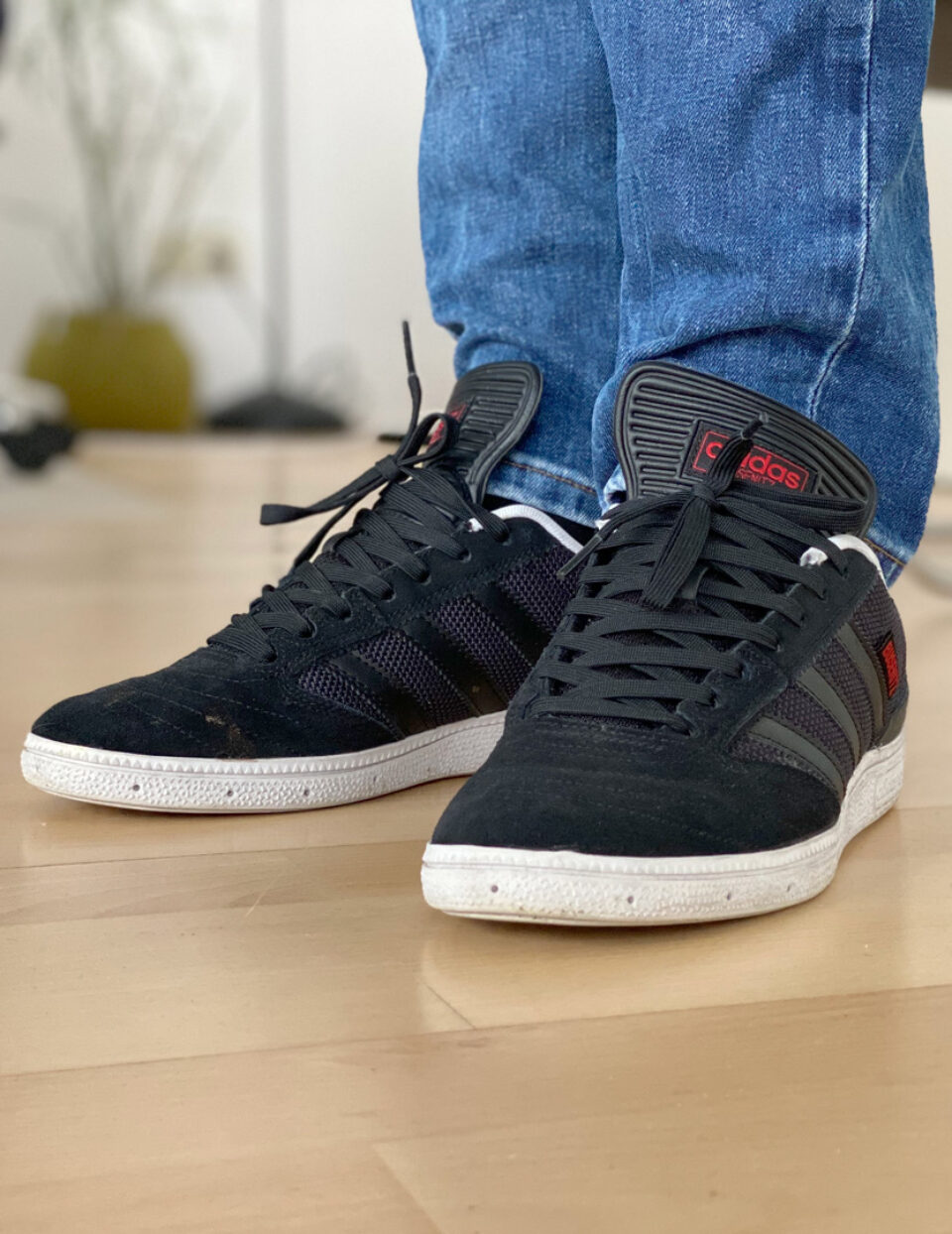 My Addidas Buzinetz. Haven't worn them for a long time. But man they look good. Actually great. Love these sk8er sneakers. And you don't need baggy pants to show them off. Defenitely a keeper!