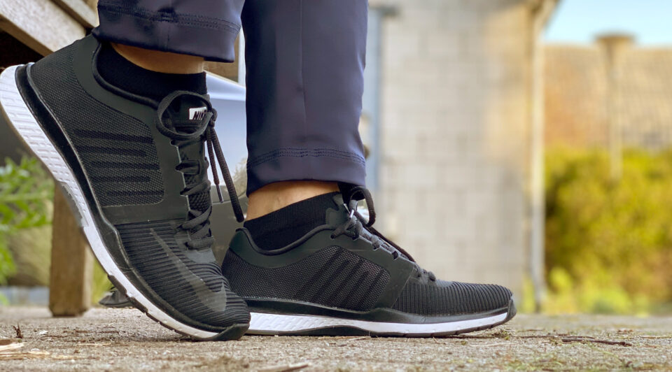 These are actually running shoes. The nice thing is that it has some reflecting material in it that lights up when lit by a car, or occasionally by the sun. I have had so strange looks at these when people were triggered by it. Nice to see that sneakers get some special attention.
