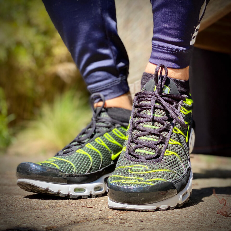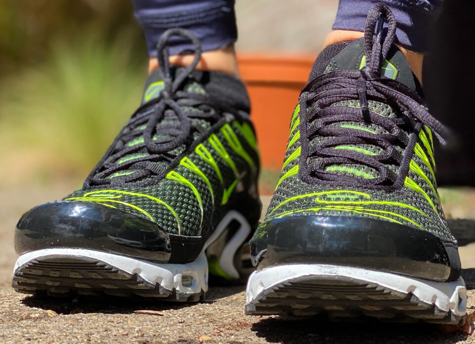 I still had my Tns around for the pictures of the Tn bench, so why not put them on. They can have it, they need it, I need it. You can see the size from the sole. If there are 4 circles at the heel, it is size is 42 or smaller. All bigger ones have 5 circles.