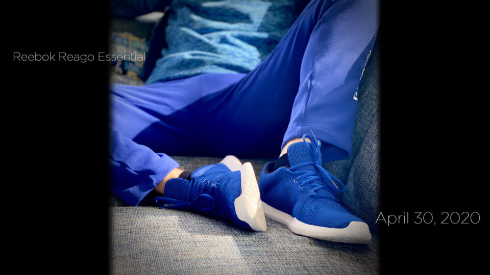 Rhapsody in blue. These Reeboks go seamlessly with my trackies. With a blue sweater and some blue pillows in the blue couch. Can we call it a balance day? Themn. My socks are black. But they tend to color too by the blue haze.
