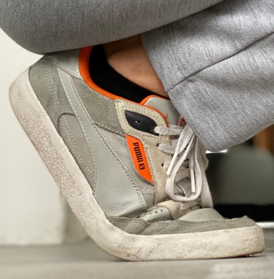 Another gray day. Today gray with an a. And so I adapt again with gray sneakers. Apart from the orange detailing they have about all gray shades imaginable. Most of them from the dirt. Nevertheless they are comfy and a nice pair of sneakers on my feet.