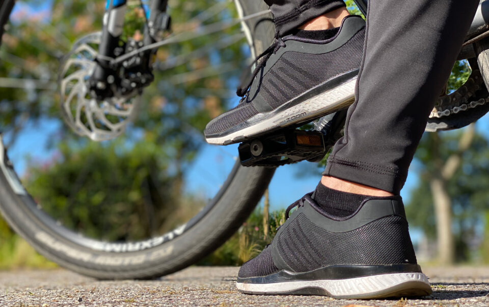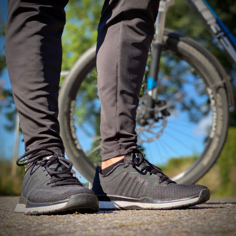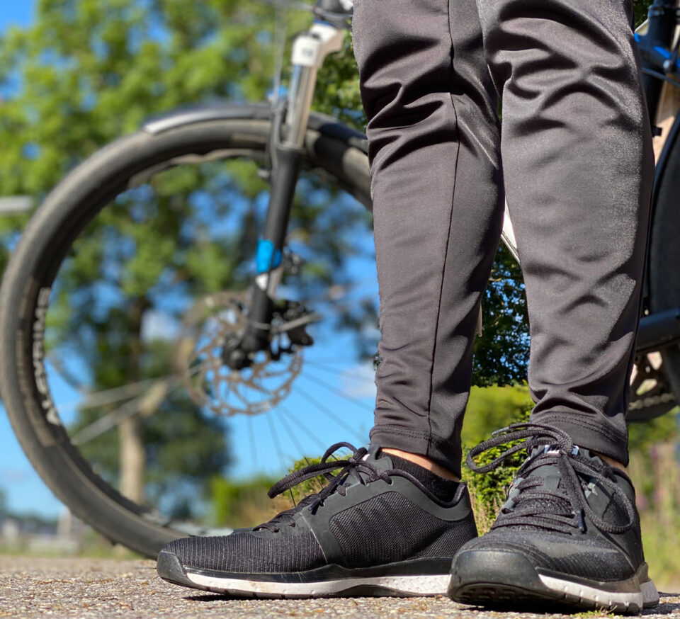 The sun has come up and it is a beautiful day for a bicycle ride. The black Nike Zoom trainers with the black tight tracking pants combine well. Before I take these off (the trackies), the sun has to do a little better. So firts I'll show off my sneakers a bit during som necessary shopping.
