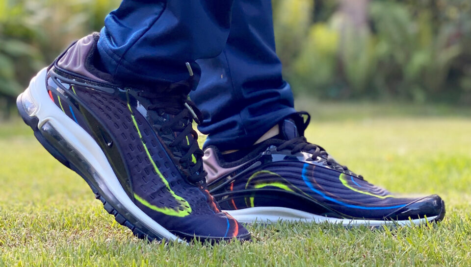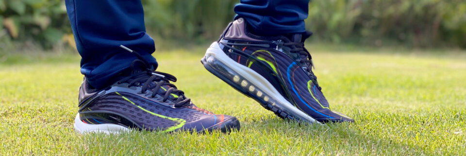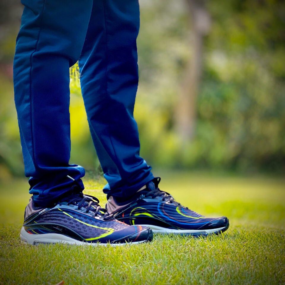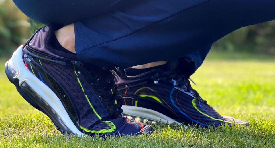 The grass is still a bit moist so I won't get down on my knees on it. But from this low point of view it looks as if it is a beautiful lawn. No way. I call it a meadow. But the grass does my Nikes well. Actual green is not used in this Air Max sneaker so the grass adds that little bit of extra to it. As if this sneaker needs it.