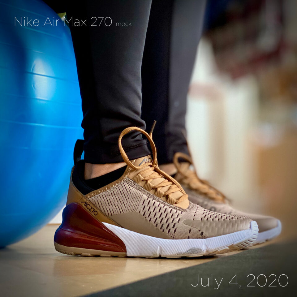 Balancing on the fitness ball in my fake Nikes. Instead of sneakers, they'd better called them slippers. I move in all directions instead of them keeping me steady on the ground.