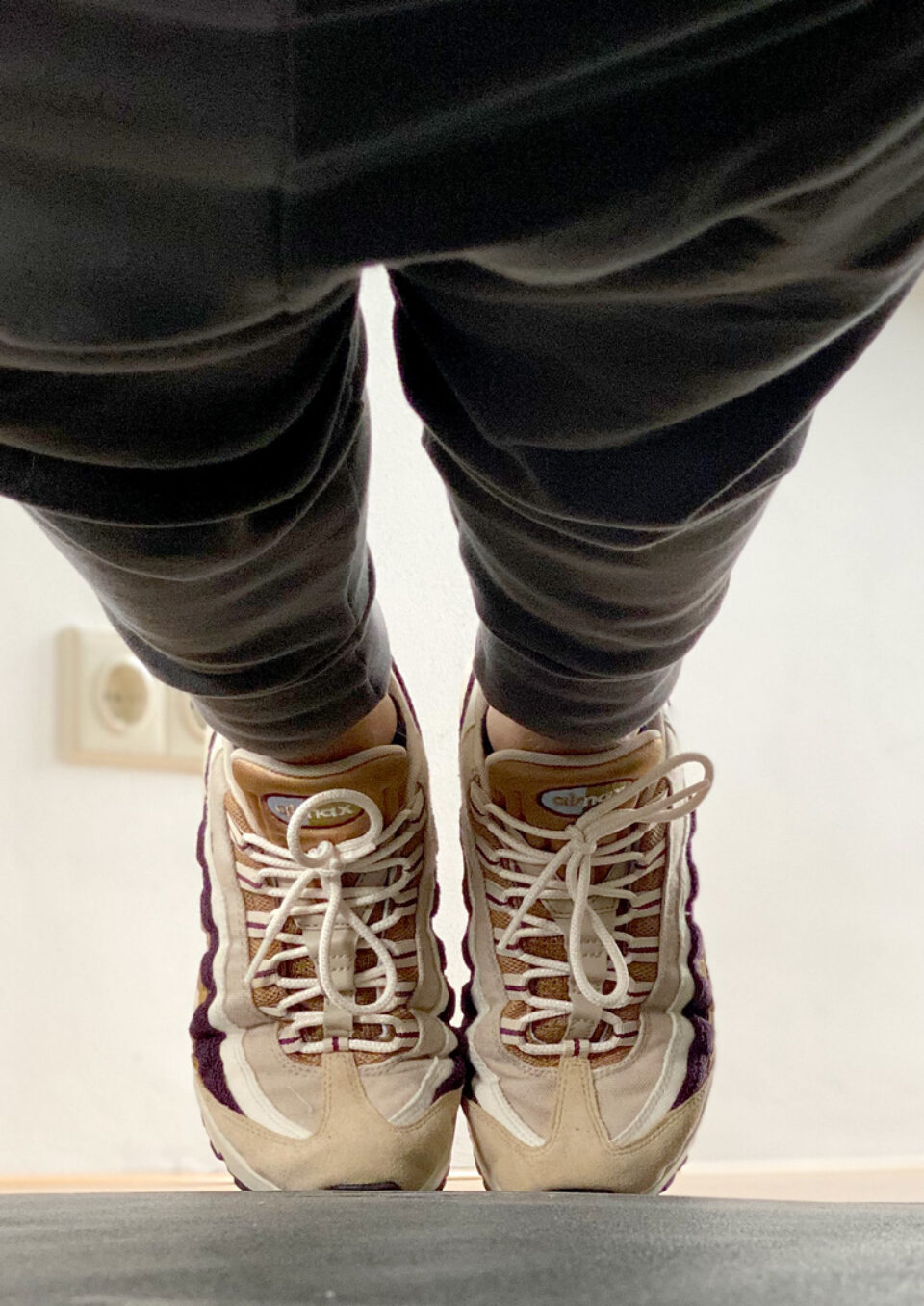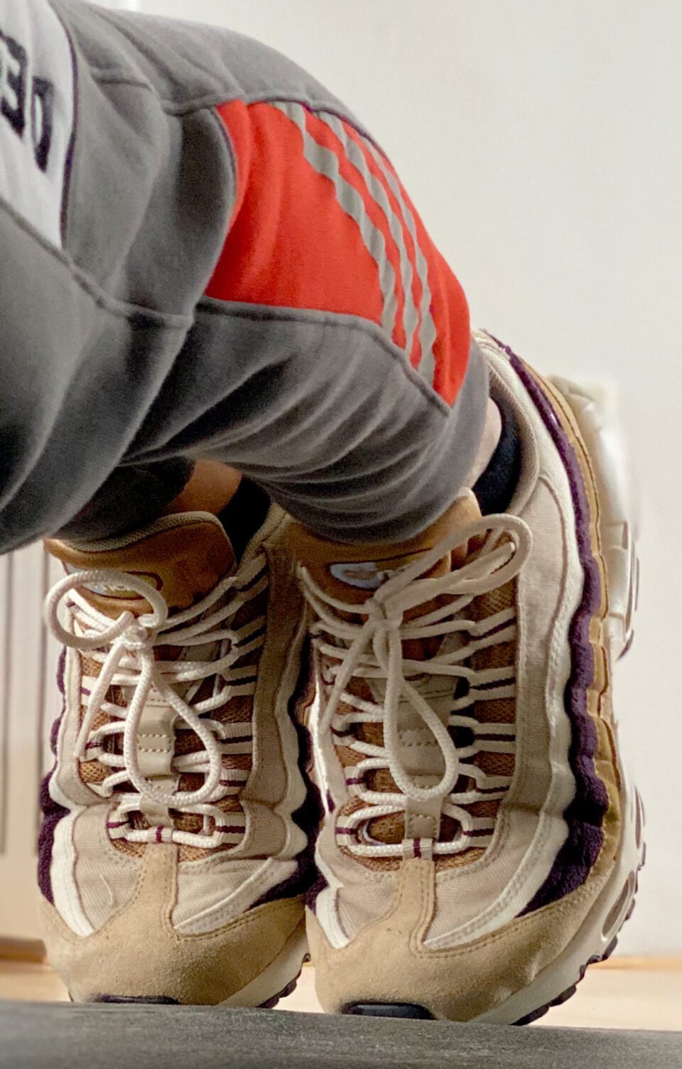 No no, thing haven't fallen over. This is just me planking. Time enough to take a picture of my Nikes Air Max 95. The 95s are the most comfortable Nike sneakers in my collection. Planking however doesn't get any easier from it.