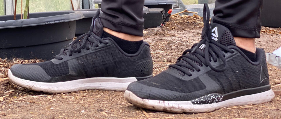 The cherries are long gone. But the cherry tomatoes are only just starting to get their final red color. The Reeboks on my feet are not particularly suited for the job of watering. Also because we now and then have s shower outside. Good for the garden as they say. But I prefer the sun. Just to keep my sneakers clean.