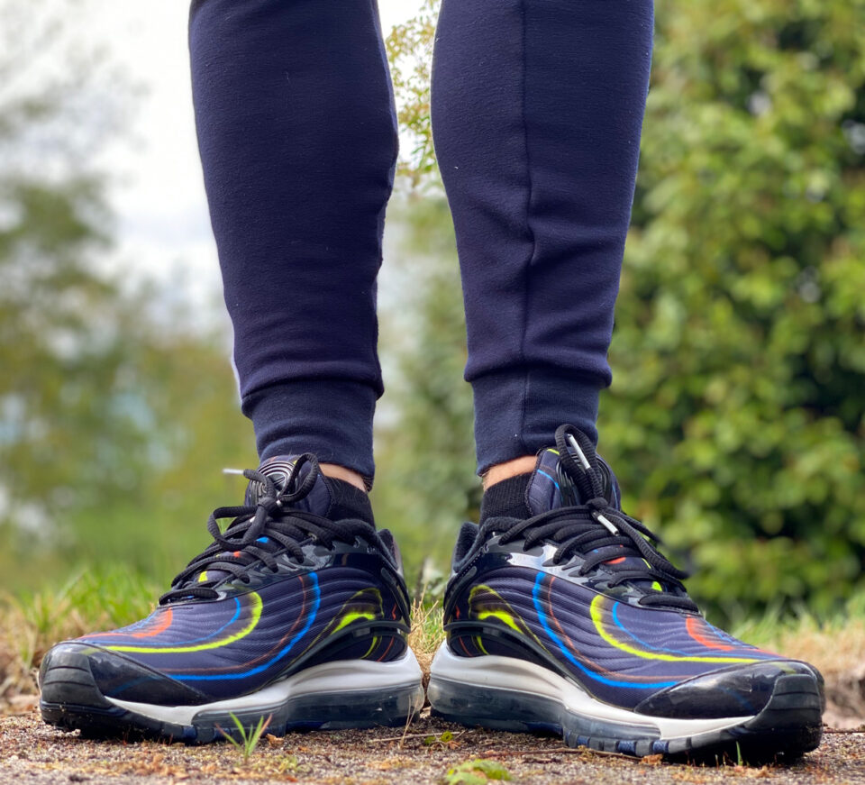 Next time I wil do some sole shots of these beauties. They are very rough and have a nice kind of line in them that keeps your feet nicely hanging on the edge of the table. Regarding the top, I think they match a lot of gear. Jeans will also do good on them. By looking at them you already feel them at your feet.