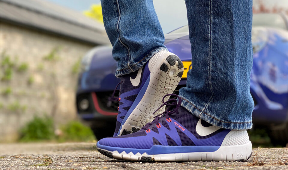 The blue color of the Alfa with its red lipstick line under the bumper matches the color scheme of these Nikes Free seamlessly. Even the white of the soles reflects back in the chrome of the V-shaped grille. A combination of two pieces af gear that match and fit perfectly. Both run great. And also Free applies to both of them. Great combi!