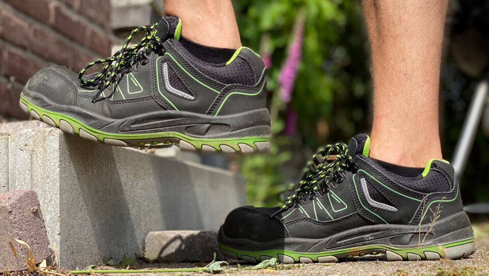 Had to do some working. Bit of moving stuff, so not any dirty garden work or something. Hence I chose these working shoes to protect my feet and black socks. This must be about the best view you ever get of them. Wearing my shorts allows full focus on the shoes.