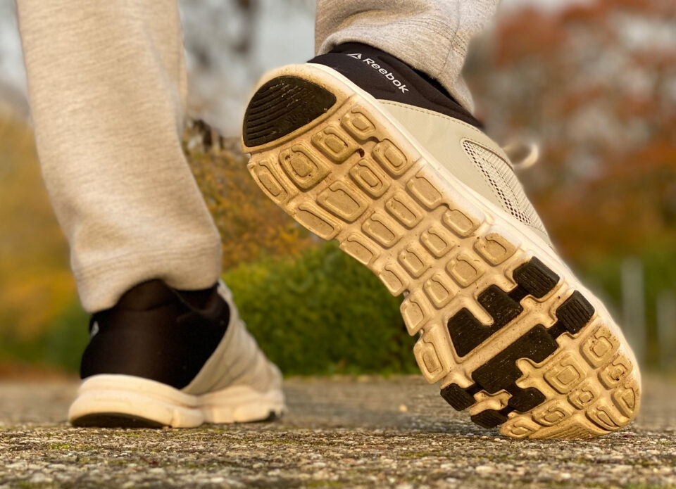 My Reeboks just catch todays last sun rays. They were my choice today. I was directed to their grey color because of the tracking pants. Even though there are some low range sneakers, I like their style, fit and comfort. I have some significant more expensive sneakers that come no where near to these.