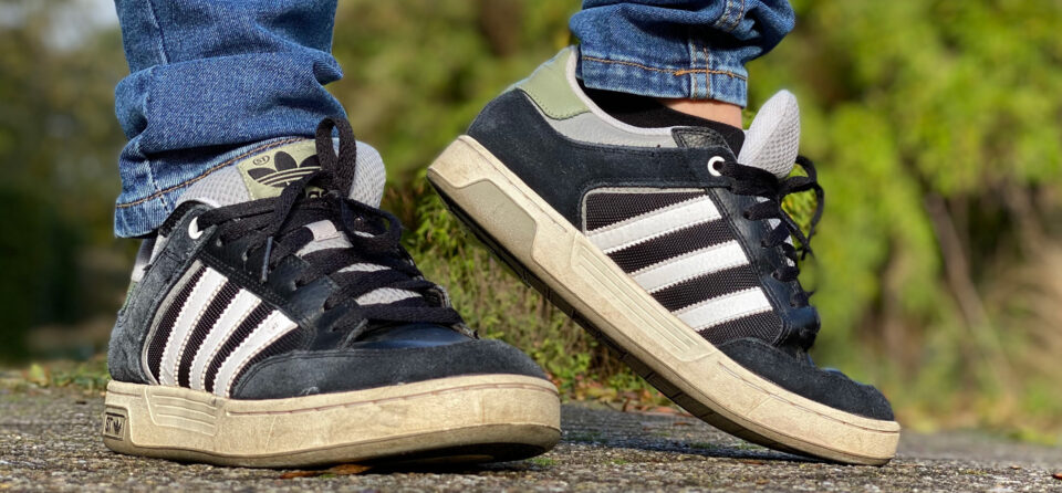 My semi skater sneakers, Adidas ST. When I bought these I could choose between white or black laces. Since the black ones were already in, I tied them I stuck to that. And that was the last time I ever touched the laces. There is no need to undo them to get in or out. I think I still have the white laces, perhaps I will exchange them some time.
