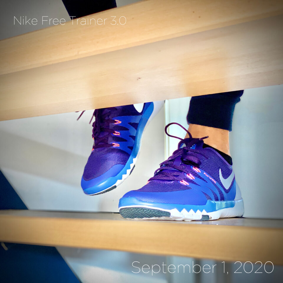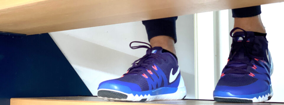 After last weeks grey sneakers, this week seems to become blue. Today blue Nike Free trainers with orange detailing. When walking the stairs it is a good thing that they are ultra light. But on the other hand, it forces you to go another time up and down to get enough exersise.
