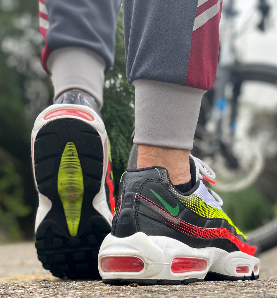 One pair that can't be missed in the colorful sneaker series is this pair of Nike Air Max 95 SE. The colors just burst of the sneakers. I should have discovered the 95s earlier. They are an absolute dream for my feet. Extremely comfortable. I think it is partly because of the thick sole. It is quite some thicker than any other sneaker. I especially notice that when I am riding my bike. With these senaker I always have the feeling my saddle is too low.